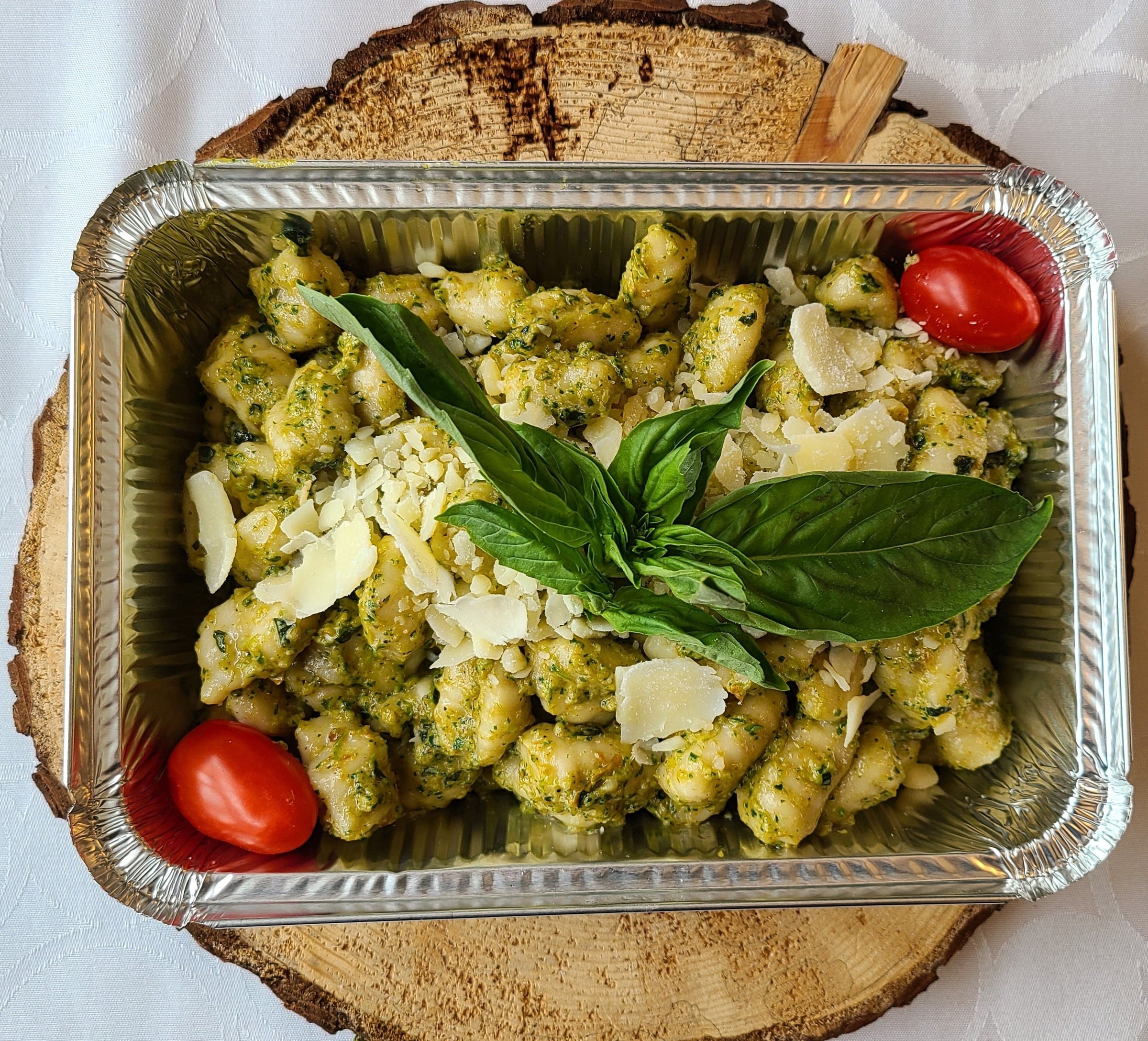 Ingredients: Gnocchi, dried tomatoes, basil, arugula, garlic, parmesan and olive oil